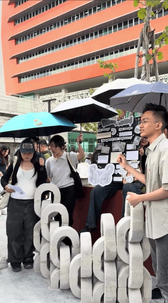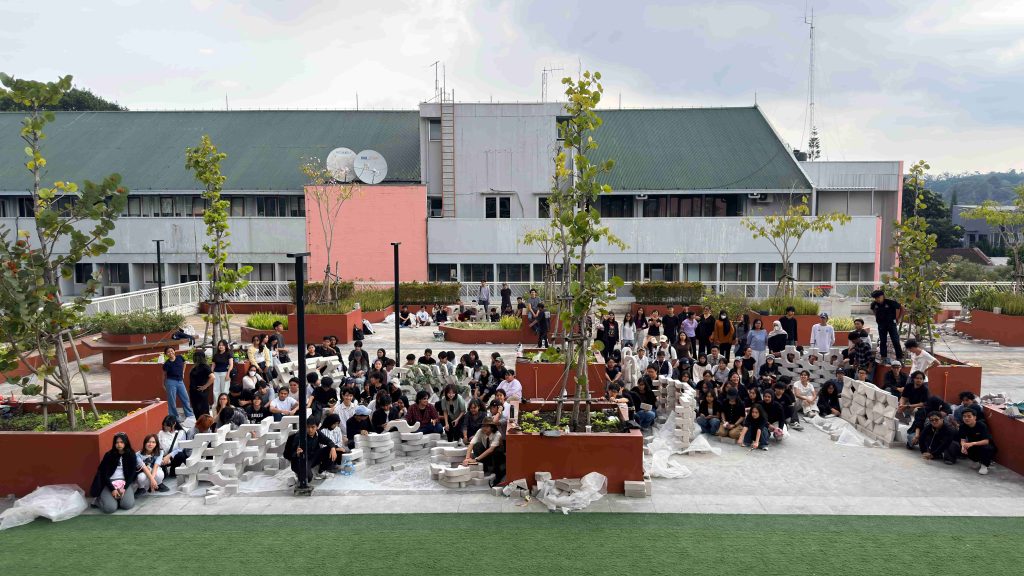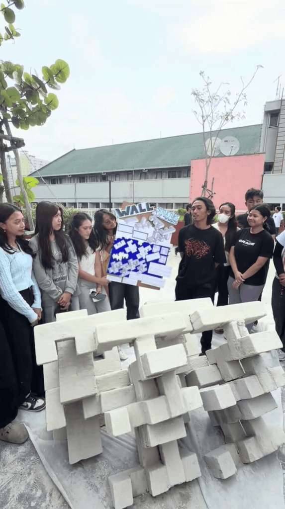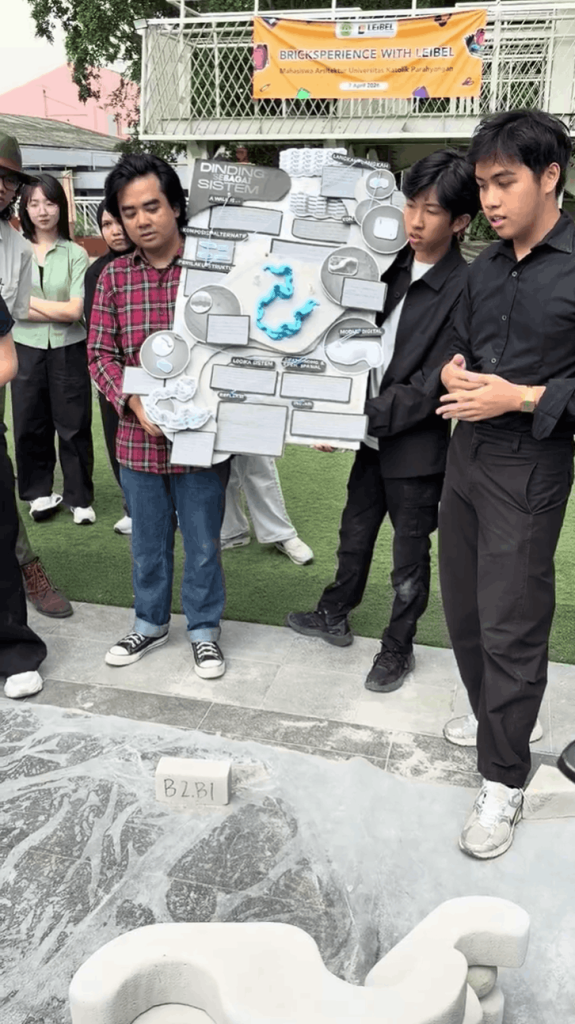 Dalam kegiatan ini, mahasiswa bekerja secara kolaboratif untuk menyusun modul-modul bata menjadi berbagai konfigurasi spasial. Eksperimen ini memungkinkan mereka untuk mengeksplorasi hubungan antara struktur, tekstur, dan ekspresi visual material. Tema “Wall or something else?” menjadi dasar pemikiran dalam mendorong mahasiswa untuk melihat bata tidak hanya sebagai pembatas, tetapi juga sebagai elemen yang dapat membentuk pengalaman ruang.