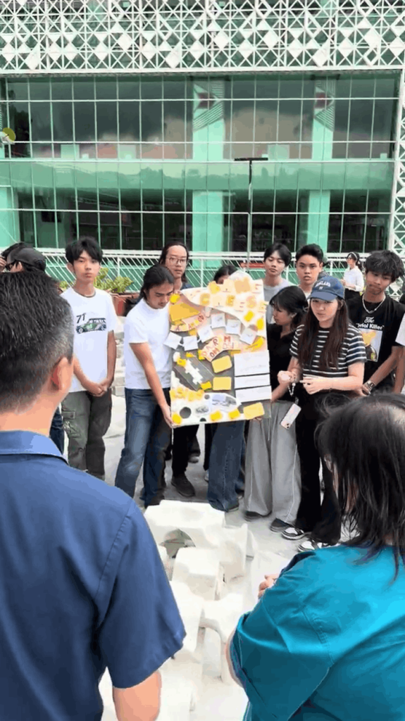 Selain itu, penggunaan teknologi Virtual Reality (VR) turut memberikan pengalaman imersif bagi mahasiswa dalam memahami skala dan ruang dari hasil eksplorasi mereka. Dengan VR, mahasiswa dapat “masuk” ke dalam desain yang mereka buat, sehingga proses evaluasi ruang menjadi lebih intuitif dan kontekstual.