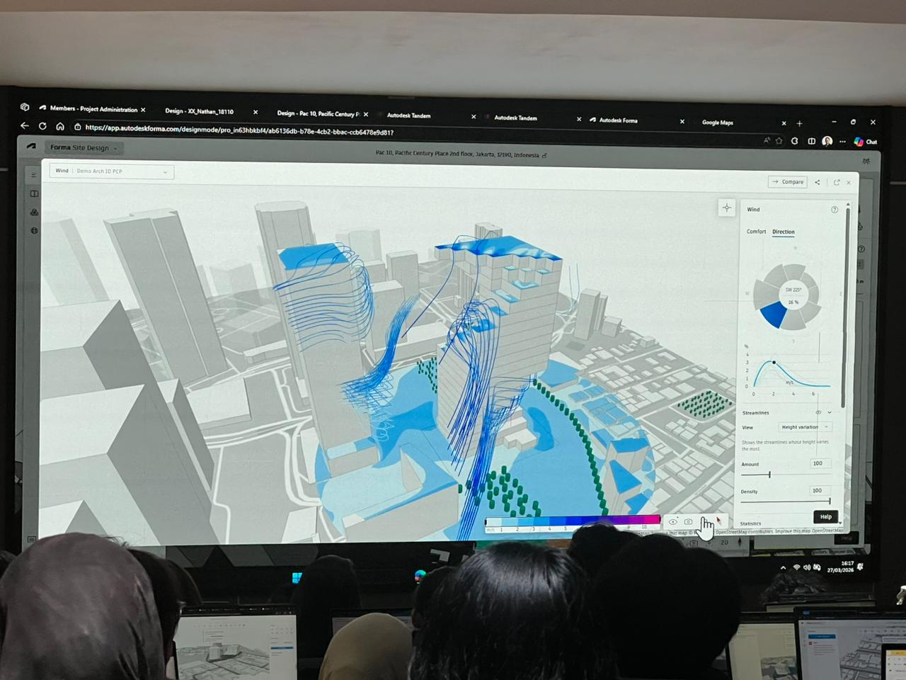 Workshop ini bertujuan untuk memperkenalkan penggunaan Autodesk Forma sebagai tools berbasis cloud dalam mendukung analisis tapak dan optimalisasi massa bangunan. Melalui platform ini, mahasiswa dapat mengeksplorasi berbagai aspek lingkungan seperti radiasi matahari, kebisingan, dan kondisi angin sebagai dasar pengambilan keputusan desain.